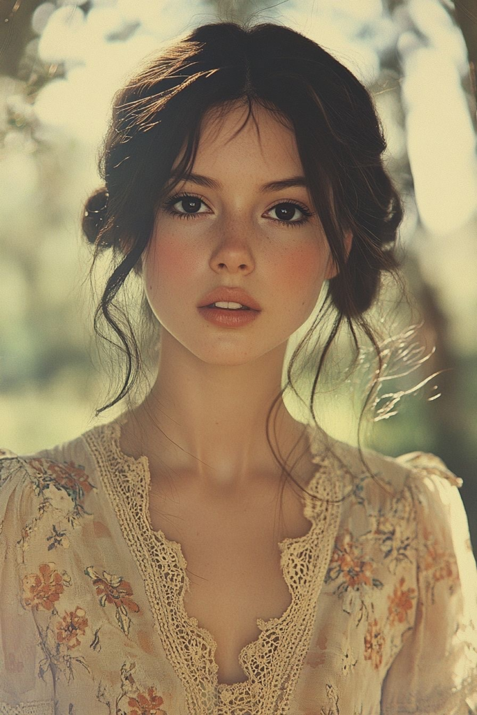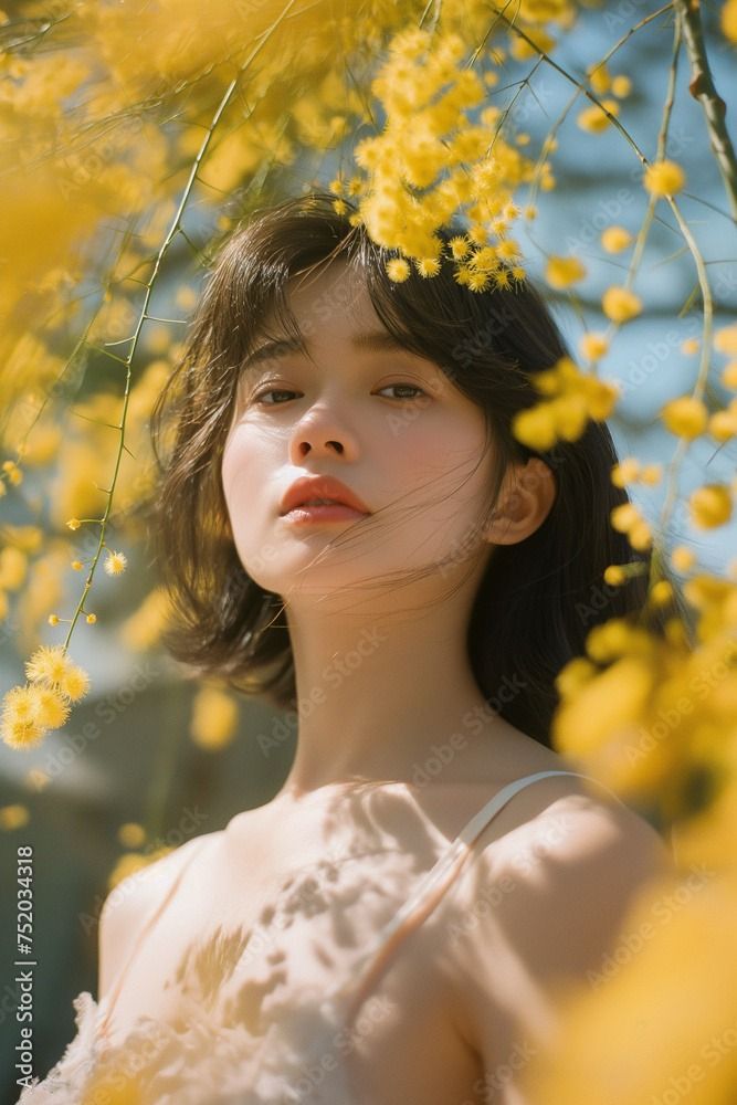 ミモザと女性、植物、ポー...